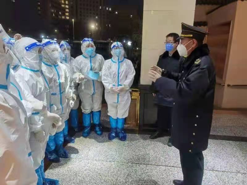 守土有責,守土盡責。作為飯店防疫的第一道關口,安全部全員響應,主動作為,黨員干部帶頭以上率下,按照思想凝聚、力量匯集、集中調度、統一指揮的工作總要求,用“疫”不容辭的職責精神,履行崗位職責,有效發揮了安全保衛的作用力量。安全部嚴把第一道防線,嚴守每一個出入口,每天24小時輪流值守。嚴格按照疫情防控要求,對外來人員認真測量體溫、查驗健康碼,并進行實名登記,對外來物品進行檢查與消毒,嚴防死守,杜絕一切人員風險及物品隱患進入飯店。設置專區為醫療隊車輛停放及物資擺放提供便利,并協助引導人員與車輛通行。