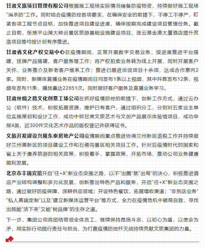 沖鋒在前抗疫情 守土盡責穩經營——甘肅文旅集團抗疫工作紀實